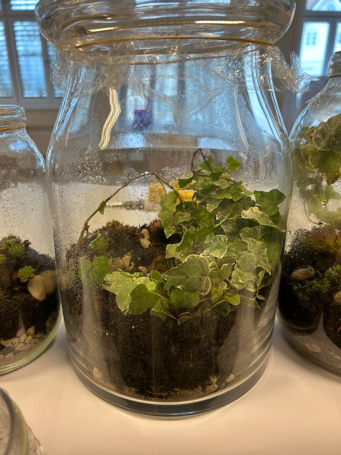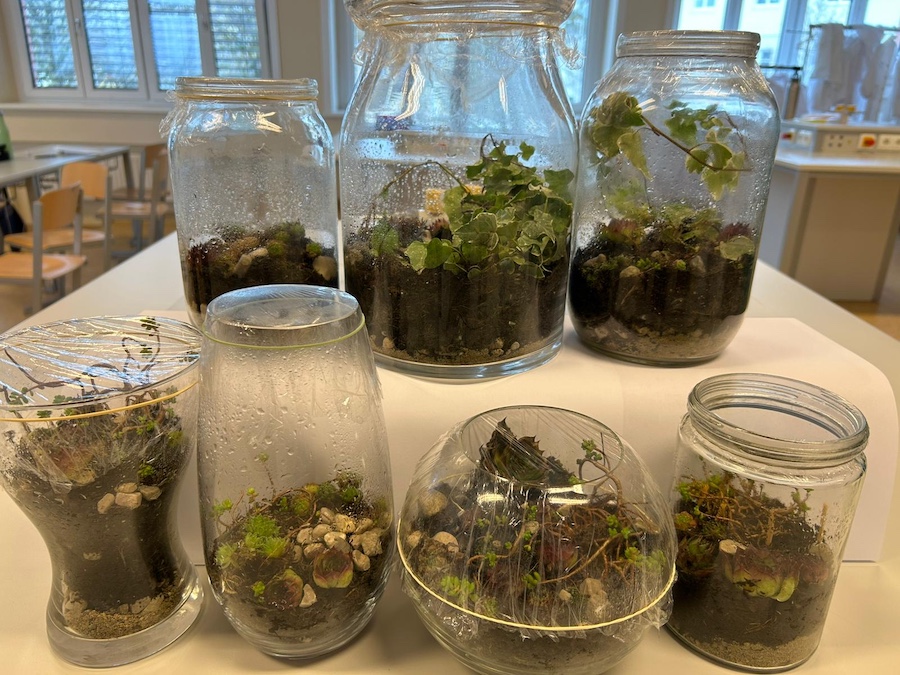 Die Ergebnisse können sich sehen lassen – die Flaschengärten zeigen, wie kreativ und sorgfältig die Schülerinnen gearbeitet haben.