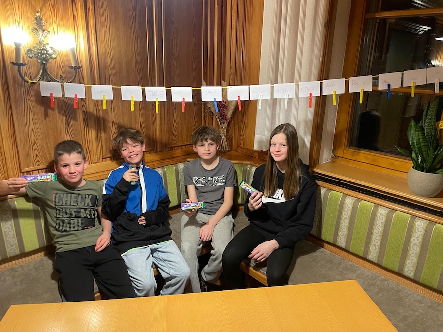 Am Abend stand gemeinsames Programm auf dem Plan. Bei verschiedenen Gruppenspielen ließen die Schüler*innen den Tag ausklingen und verbrachten noch einmal Zeit miteinander abseits der Piste.