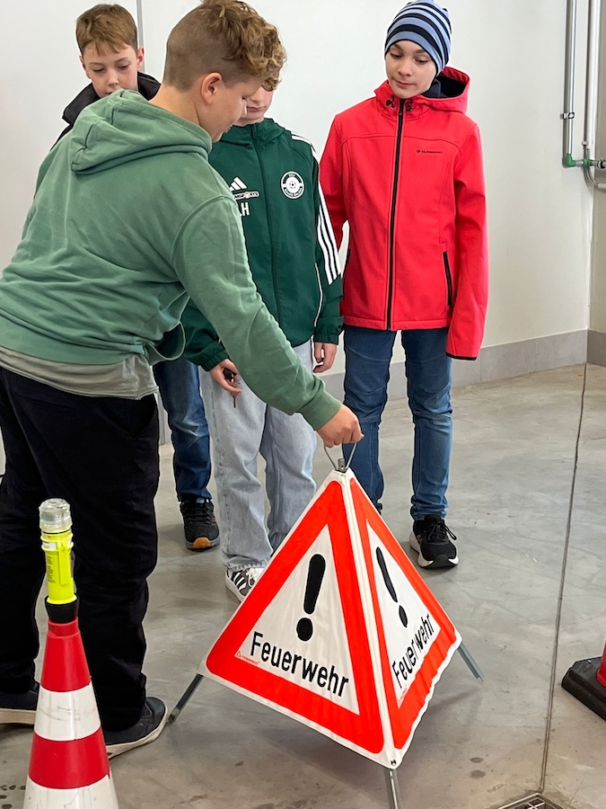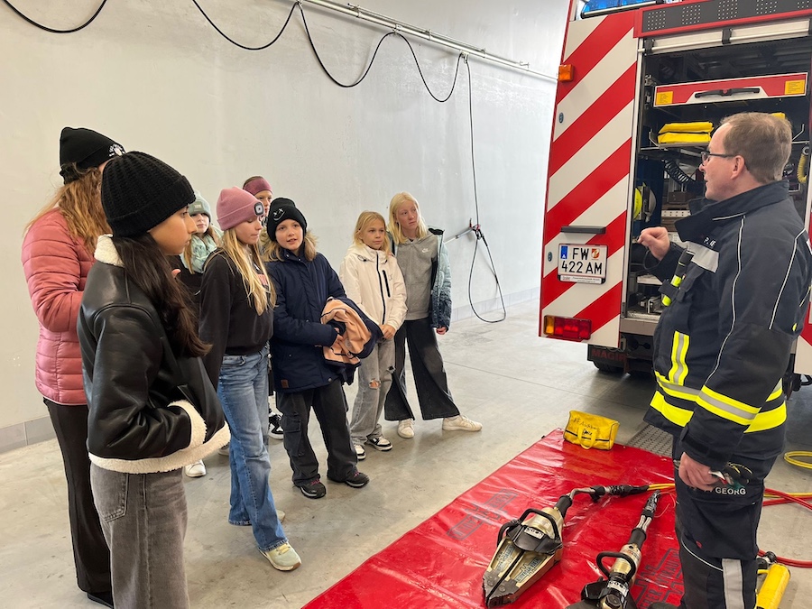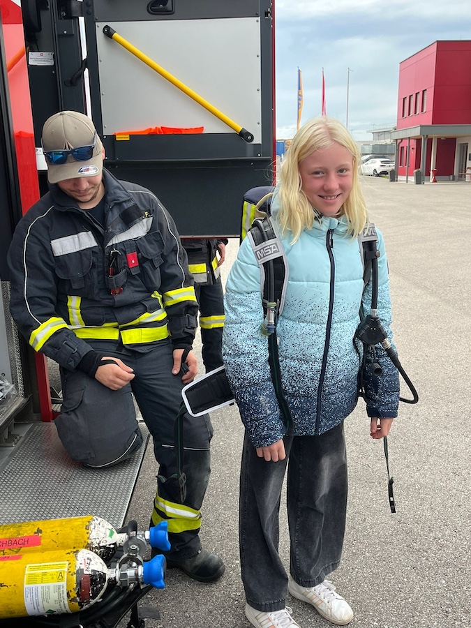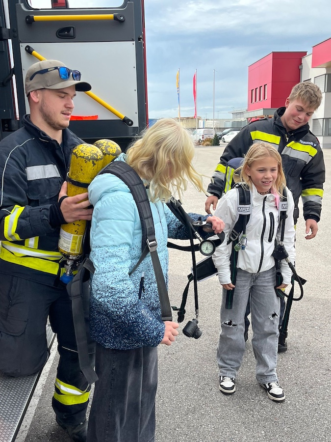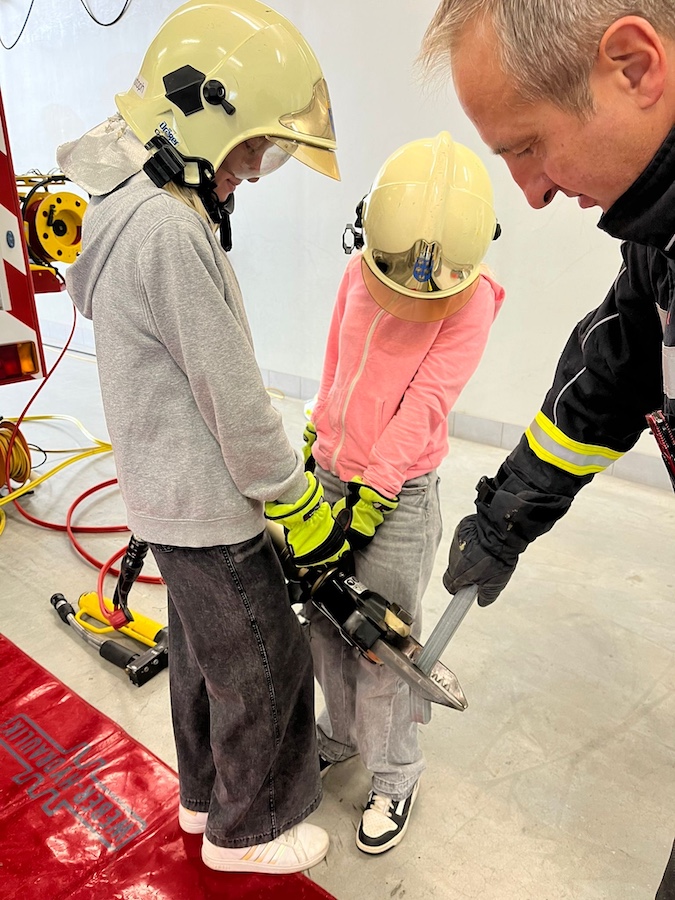 An drei abwechslungsreichen Stationen bekamen die Schüler*innen Einblicke in zentrale Aufgaben der Feuerwehr: Sie lernten, wie eine Unfallstelle fachgerecht abgesichert wird und welche Werkzeuge bei Verkehrsunfällen zum Einsatz kommen. Besonders beeindruckend war das Ausprobieren der Löschspritze und die Demonstration, wie Personen aus Notlagen unter schweren Lasten geborgen werden können.